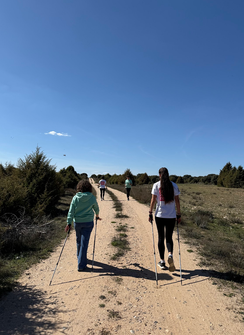Hace unas semanas, Marta, Paloma y yo (Elsa) tuvimos la suerte de vivirlo en primera persona. Las visitamos en Castrillo de Sepúlveda, donde nos recibieron con los brazos abiertos y nos prepararon para iniciarnos en este deporte. Nos equiparon con bastones especiales con dragoneras, nos enseñaron la técnica con una paciencia infinita, y compartieron con nosotras los numerosos beneficios físicos y mentales de la marcha nórdica. Más allá del ejercicio, fue una experiencia llena de risas, complicidad y aprendizaje.